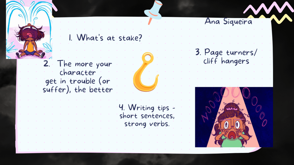 - Show, Don’t Tell – Show your characters’ feelings through their emotions. In If Your Babysitter is a Bruja when the character is scared, her feelings are shown.