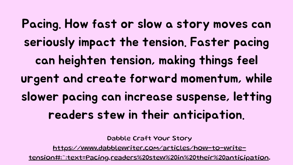 Tension keeps readers emotionally engaged, motivating them to keep turning the pages. Readers immerse themselves in your story when characters face moments of uncertainty, conflict, or suspense. They connect with characters’ feelings and challenges, becoming active participants in the story, wondering what will happen next. They can’t wait to turn the pages.