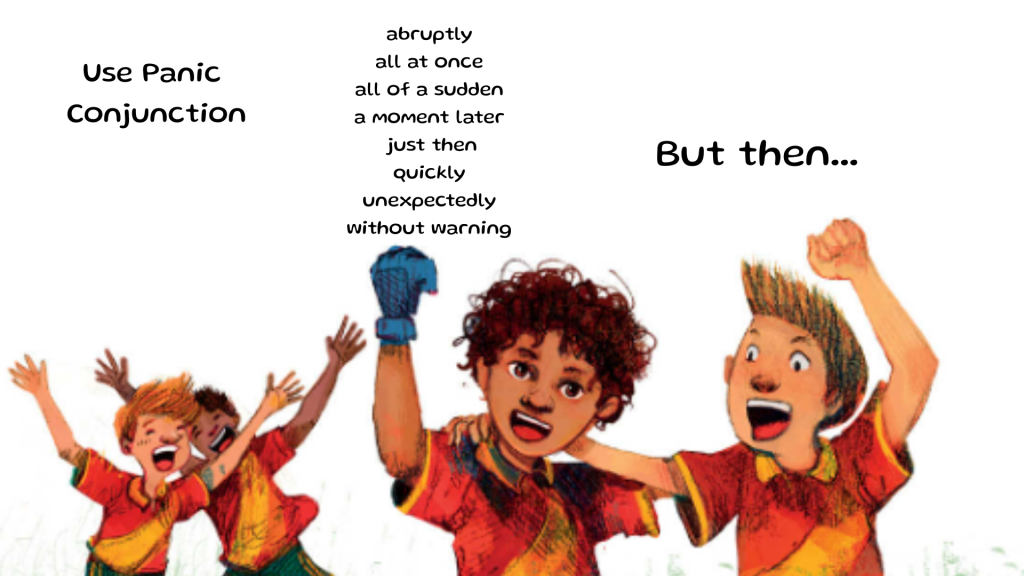 Let your reader know something is about to happen by using one of these conjunctions: abruptly
