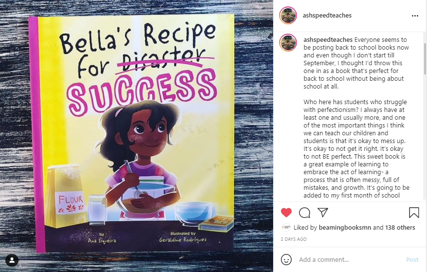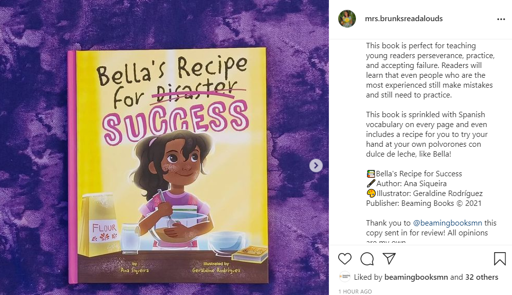 Bella’s Recipe for Success by Ana Siqueira. illus. by Geraldine Rodriguez. Beaming. ISBN 9781506468105
