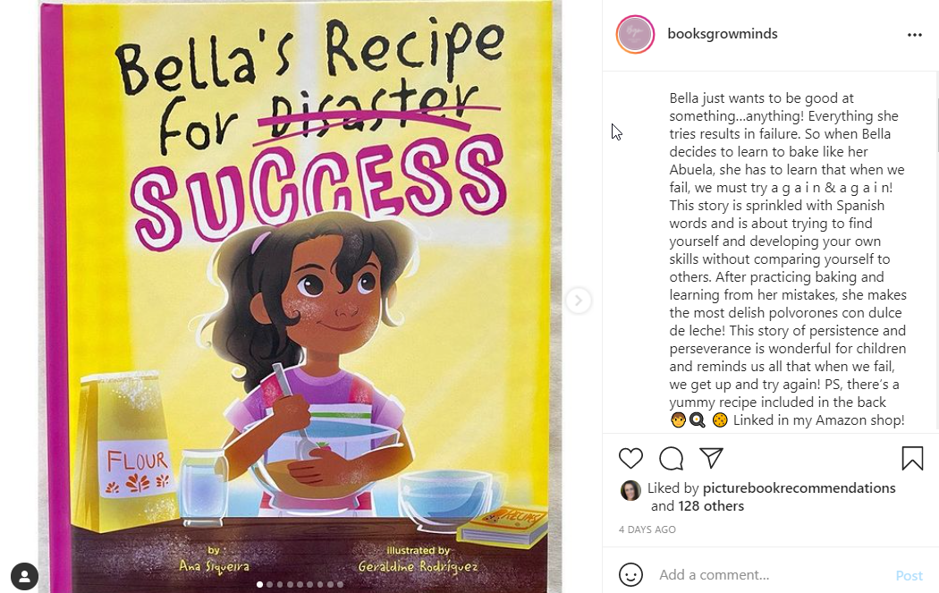Peppered with Spanish vocabulary and set in an inter-generational Latinx home, Bella’s Recipe for Success will show all kids the value of practicing to learn a new skill, and that it’s okay to make mistakes along the way.