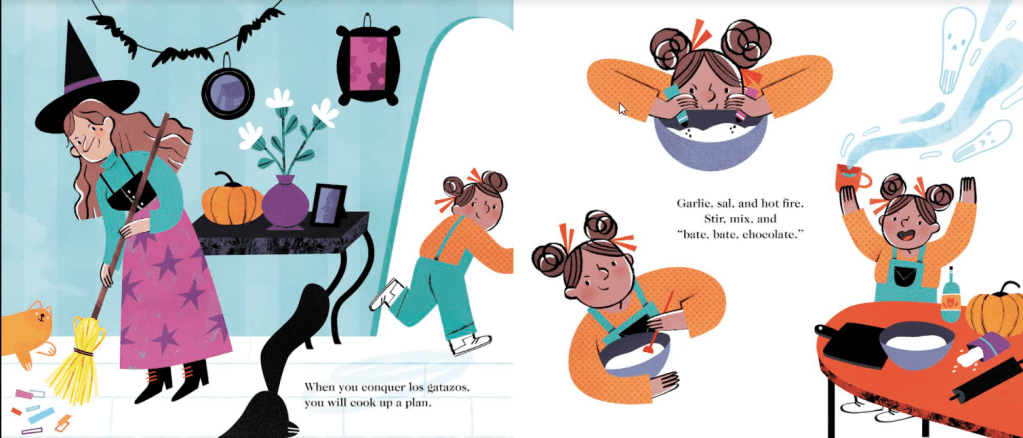 On the night before Halloween, a new babysitter might be more than she appears. She might just be a bruja! One little girl is determined not to fall victim to an evil witch or her cats. She knows bath time is really the bruja’s way of putting her in a boiling cauldron, and the only way to keep her at bay is with a magic potion — or is it?