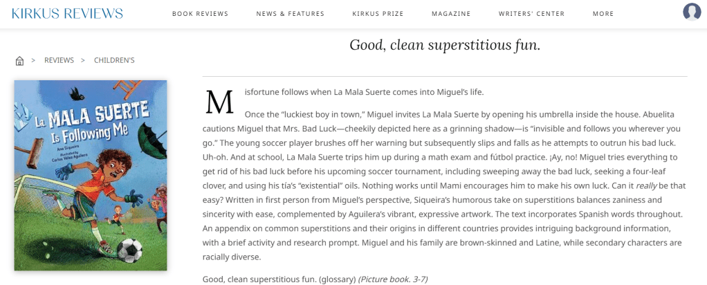 In this fun picture book romp about superstitions, can Miguel learn to make his own luck—and be rid of La Mala Suerte—before it’s too late?
